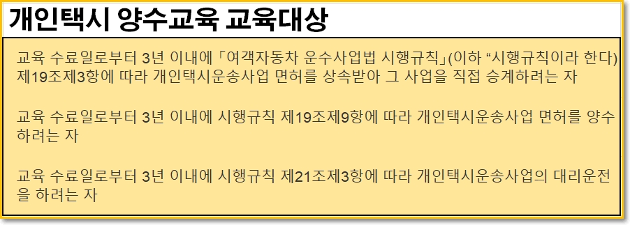 사람만 개인택시 양수교육을 신청할 수 있습니다.